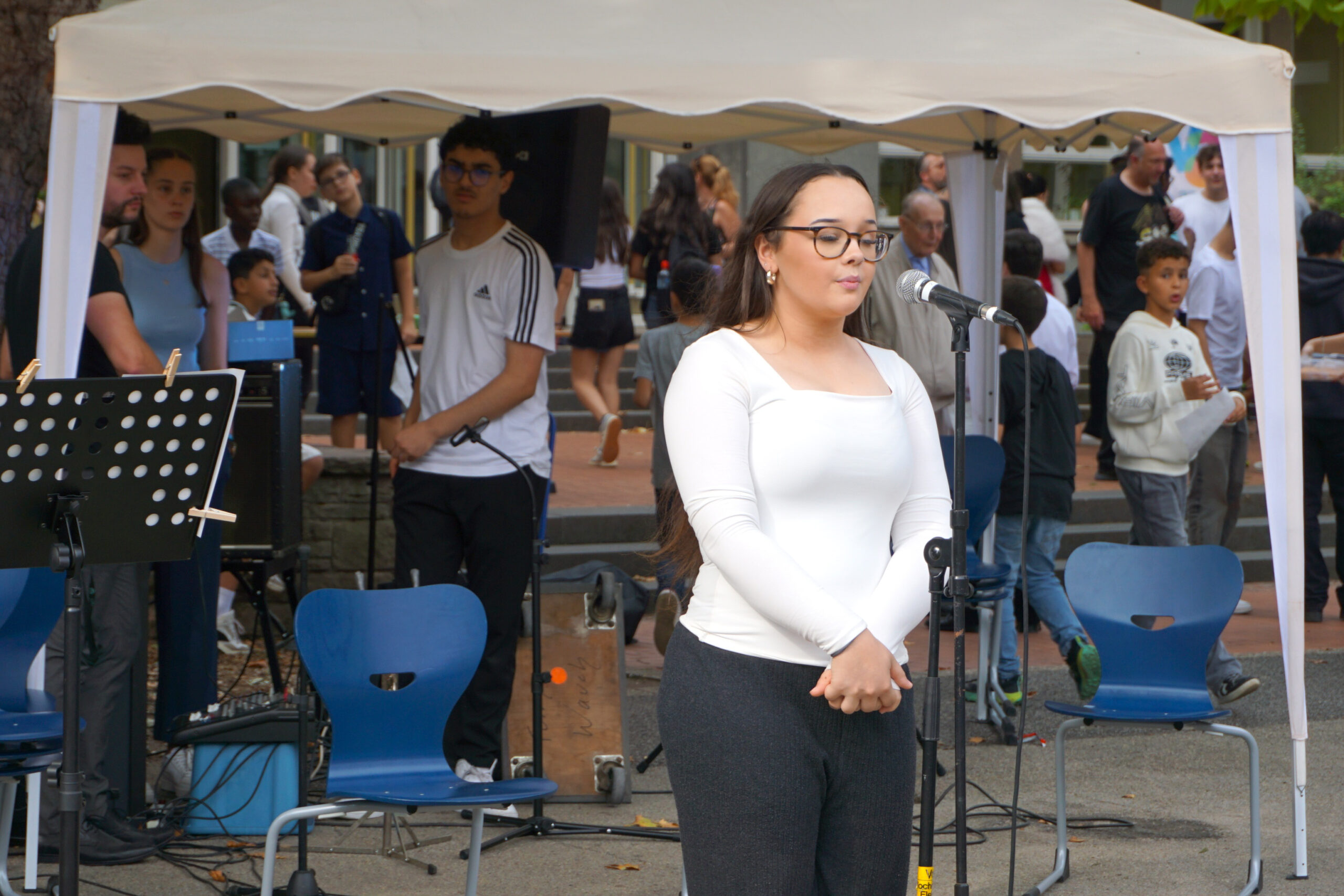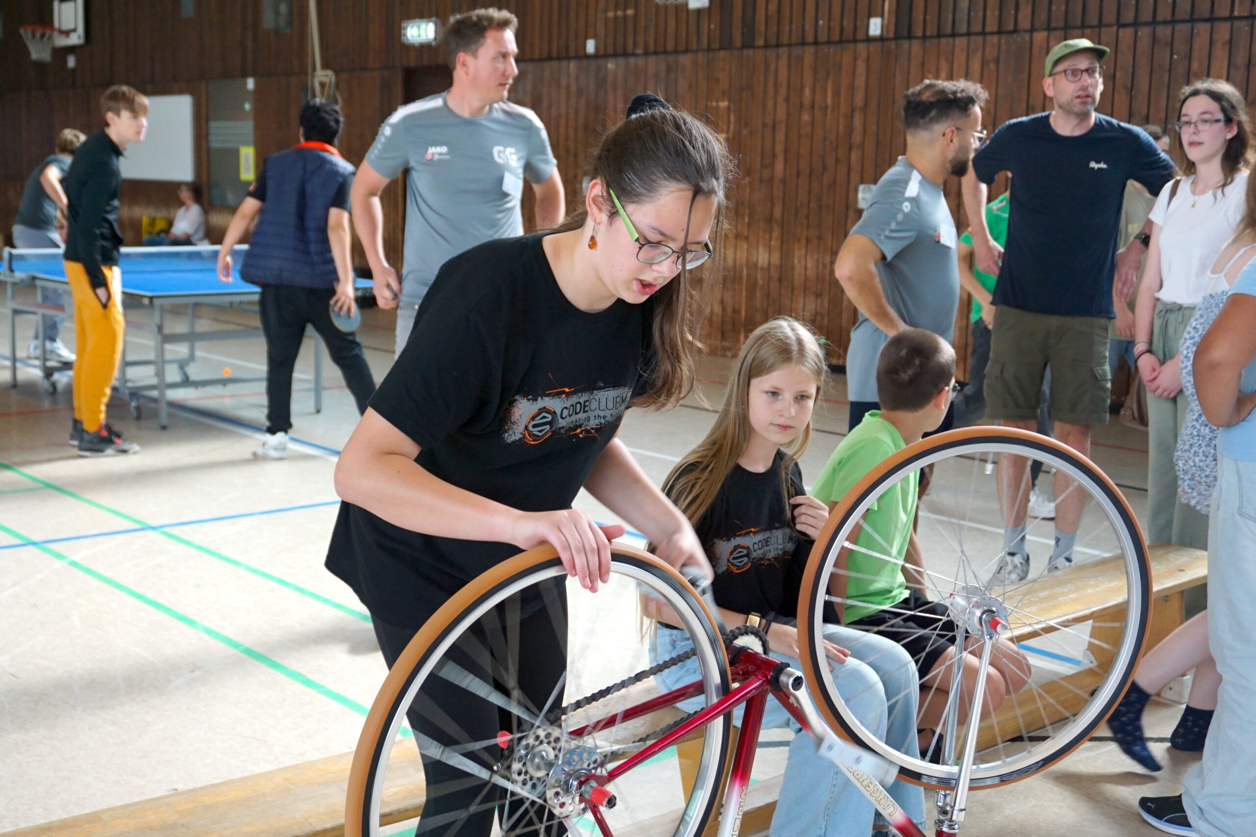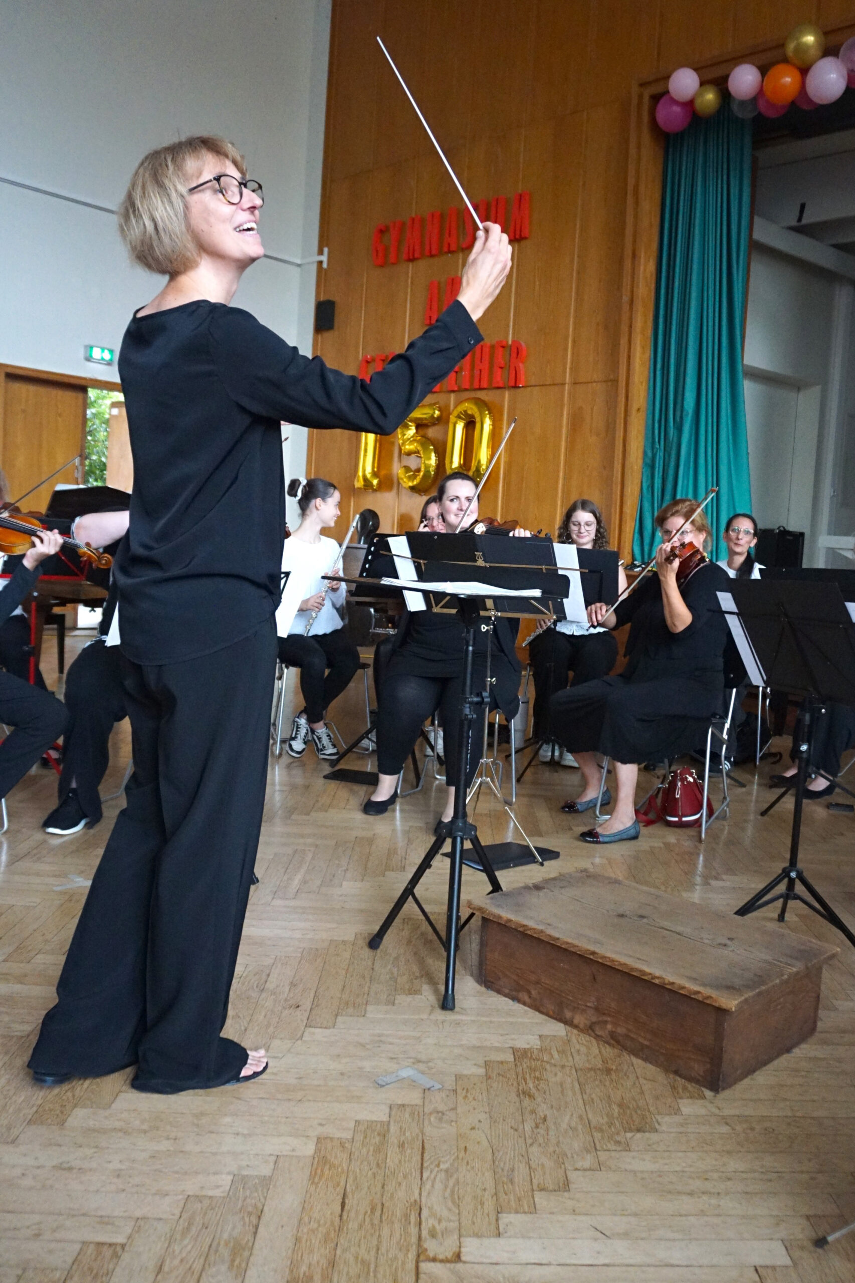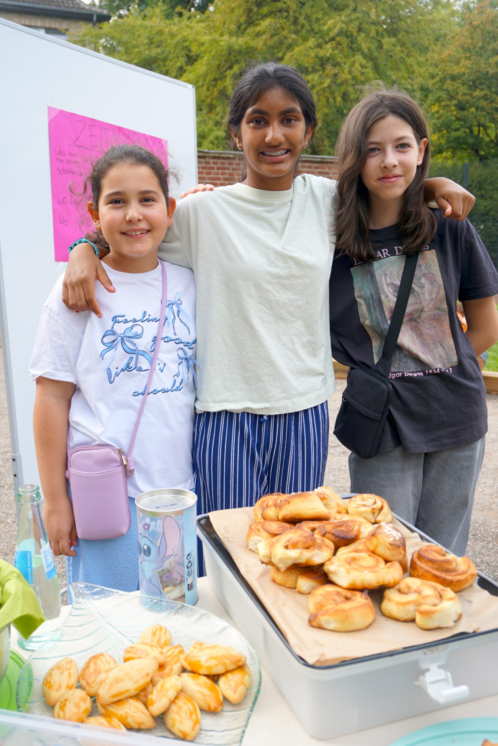 Gemeinsam mit ihren Lehrkräften Frau Flocken, Herr Bender und Herr Zöller haben sich die Schülerinnen Phelina, Rebecca, Naïma, Malgorzata, Lisa, Katja (alle Kl. 7a), Hannah, Rea, Anna (alle Kl. 8a), Mara (9b), Juli (9c), Anatasija und Melis (beide 10a) am Mo, den 08.09.2025 im Rahmen eines ganztägigen Projekttages auf unser Schuljubiläum vorbereitet, das fotografisch für unsere Webauftritte und eine Festschrift dokumentiert werden sollte. Neben der technischen Einweisung in die Geräte standen Kriterien guter Fotos im Fokus des Projekts. Wer unserer Jubiläumsfeier besucht hat, wird immer wieder unserem Fototeam, das in Kleingruppen unterwegs war, über den Weg gelaufen sein, während fleißig fotografiert wurde. Insgesamt war das Team mit zehn Kameras unterwegs, z.T. wurden auch Fotos mit Handy gemacht. So sammelte sich schnell ein riesiger Fundus von über 2000 Fotos Rohmaterial an, der aufwendig gesichtet und rigoros zusammengestrichen werden musste, denn nur die besten Aufnahmen sollten nachbearbeitet und präsentiert werden. Diesem schwierigen Unterfangen wurde sich im Rahmen eines zweiten, nachbereitenden Projekttages gewidmet, der am Fr., dem 26.09.2025 stattfand. Vom den über 2000 Fotos verblieben lediglich rund 140, die nachbearbeitet wurden. Von diesen finden Sie unten in einer Galerie ein Best-of von 65 Aufnahmen. Die Teilnehmerinnen und Lehrkräfte wünschen viel Spaß beim Durchsehen und Zurückerinnern.