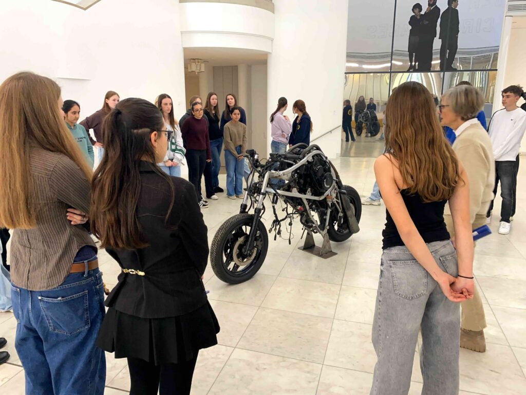 Darüber hinaus haben unsere Schülerinnen und Schüler auch viel über den Architekten des Museums, Hans Hollein, erfahren: Er wollte eine Art Anti-Museum erschaffen, das sich von anderen Ausstellungsräumen durch die Raumaufteilung und -Formen unterscheidet, denn es liegt dem Besucher zu Füßen und ist nach unten in dem Berg hinuntergebaut.