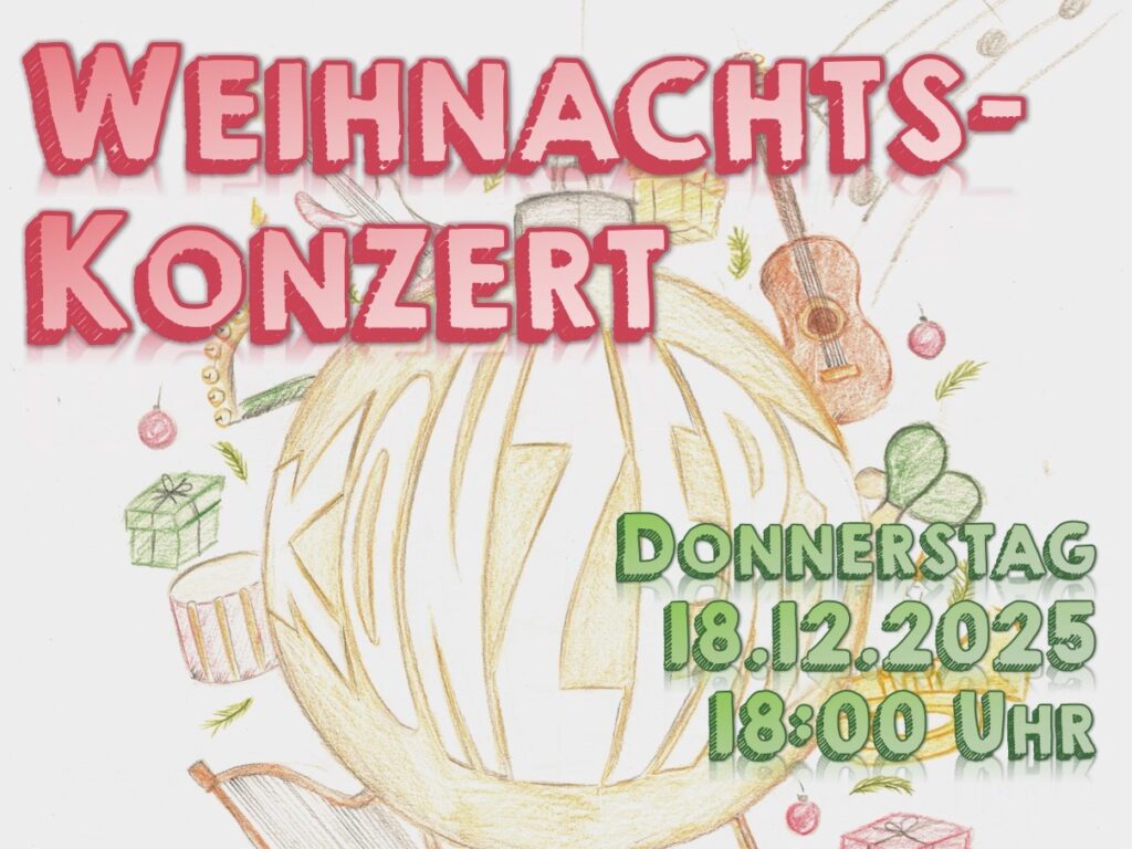 Wir laden Sie/euch herzlich zu unserem diesjährigen Weihnachtskonzert am 18.12.2025 ab 18.00 Uhr in der Aula ein.