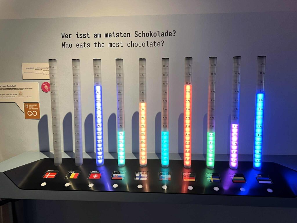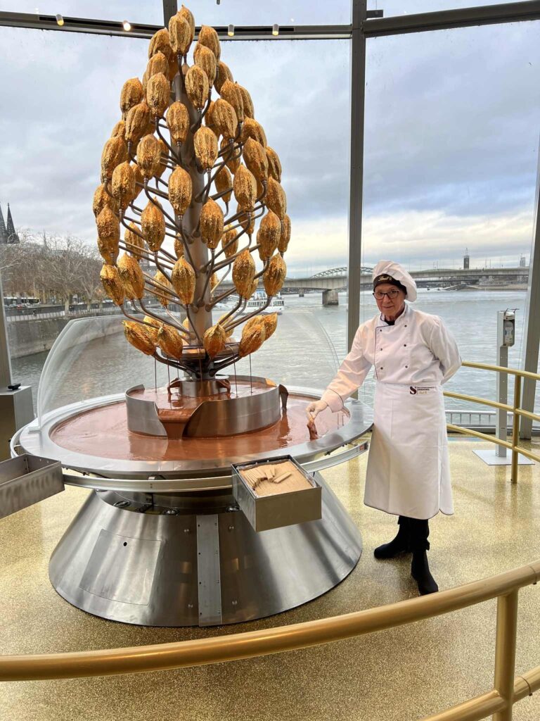 Was Studien schon ergaben, kann nun auch offiziell vom KulturKids-Modul bestätigt werden. Allein der Duft der erwärmten Schokolade ließ bereits Schüler- und Lehrer-Augen erstrahlen. Neben vielfältigen lehrreichen Informationen gab es auch interessante Stationen, bei denen man sein eigenes Kräftevermögen – beim Schleppen von Kakaobohnen – oder seine Kenntnisse rund um das Thema Schokolade im Kölner Schokoladenmuseum überprüfen konnte. Dennoch blieb das absolute Highlight der lang ersehnte Schokoladenbrunnen. Hier hält sich übrigens wacker der Mythos, man habe früher selbst die Waffel eintauchen dürfen. Aus hygienischen Gründen sei das laut Museumsmitarbeitern nie gestattet gewesen. So richtig glauben will man es aber immer noch nicht. Abgezählt werden die Waffeln allerdings auch heute nicht und wir wollen den Schokorekord unserer Modulteilnehmer lieber verschweigen, da zu viel Schokolade sicherlich auch ungesund sein kann. Auch eine Taube wollte sich einmal kundig machen und flog während unseres Besuchs ins Museum, was zu turbulenten Versuchen führte, die Taube aus dem Museumsshop zu jagen. Von solch‘ einem Ereignis kann sicherlich nicht jeder Museumsbesucher berichten und im Gegensatz zur Taube hatten alle Mitglieder mehr Glück beim Versuch, Schokolade zu ergattern.