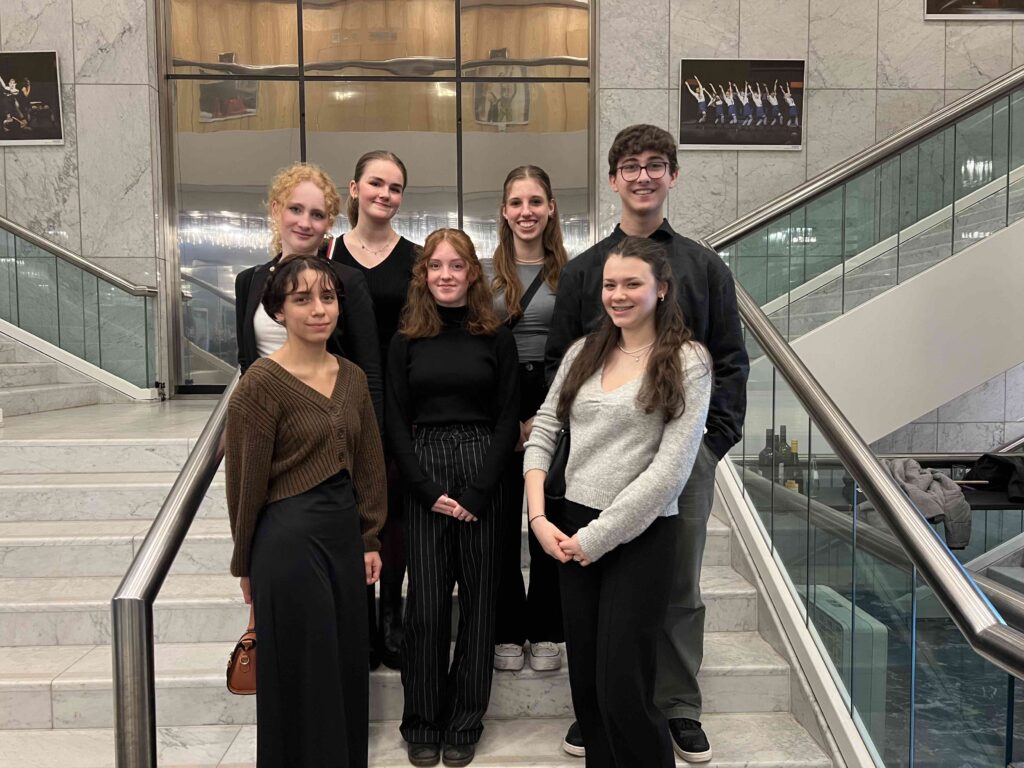Am Freitag, den 27.10.23, besuchten einige interessierte Leistungskurschülerinnen und Leistungskursschüler der Jgst. Q1 freiwillig die Theaterinszenierung des Romans Stolz und Vorurteil von Jane Austen in einer popkulturellen, modernen Aufführung im Theater Mönchengladbach. Während auffällig provokative Kostümierungen, ein buntes Bühnenbild und ein DJ voller Bewegungsdrang die Betrachterinnen und Betrachter in den Bann zogen, luden Karaokedarbietungen mit eingeblendetem Text auch das Publikum zum Mitsingen ein. Obwohl vor Beginn des Theaterbesuchs bei der Schülerschaft noch Skepsis gegenüber einer modernen Inszenierung und die Sehnsucht nach einer klassischen Inszenierung bestanden, waren die Bedenken schnell vergessen. Tränen voller Lachen und lauter Gesang erfüllten die Sitzreihe. Die Schülerschaft freut sich daher auf weitere gemeinsame Theaterabende. Im Dezember geht es dann mit dem Deutsch-Leistungskurs der Jgst. Q1 ins Schauspielhaus nach Düsseldorf. Interessierte Schülerinnen und Schüler aus den Grundkursen sind als Gäste jederzeit willkommen. Bei Interesse melden sich Schülerinnen und Schüler bitte bei Frau Krings.