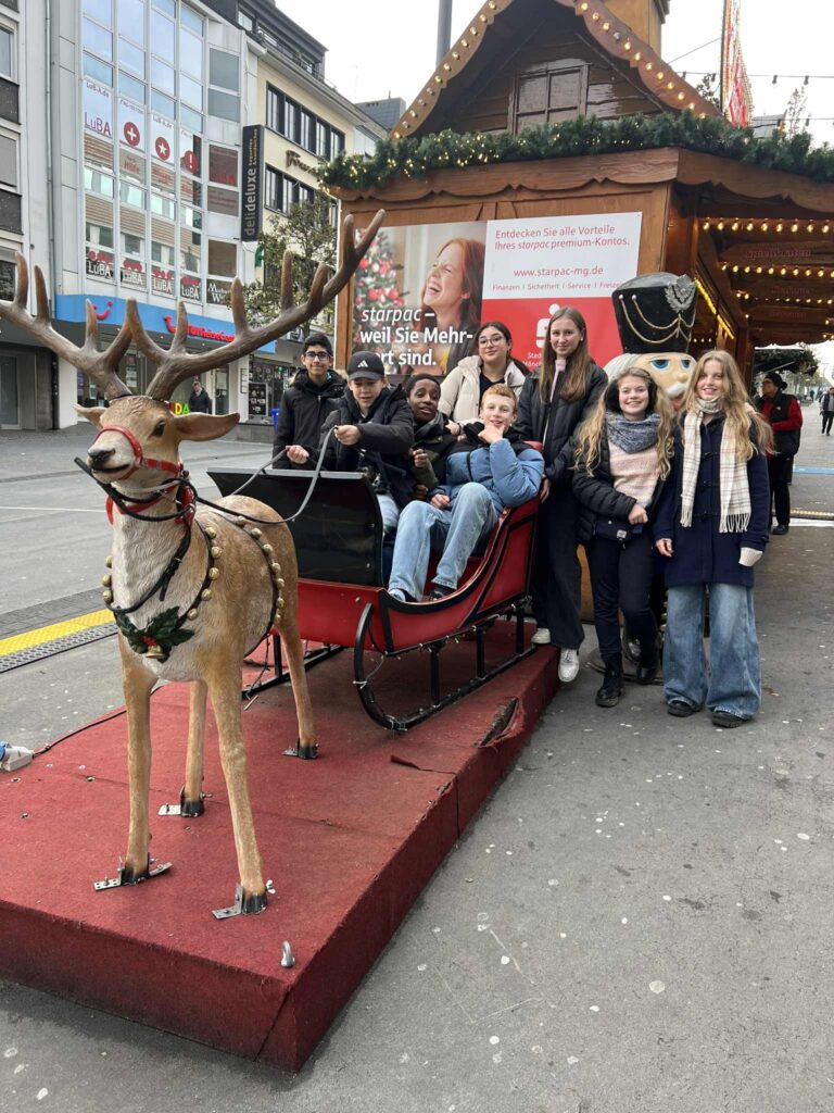 Trotz Nieselregens erkundete das KulturKids-Modul kurz den Gladbacher Weihnachtsmarkt, der neben vielen Köstlichkeiten auch schöne Fotomotive bot.