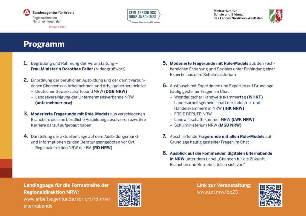 Online-Veranstaltung des Bildungsministeriums und der Arbeitsagentur für Arbeit