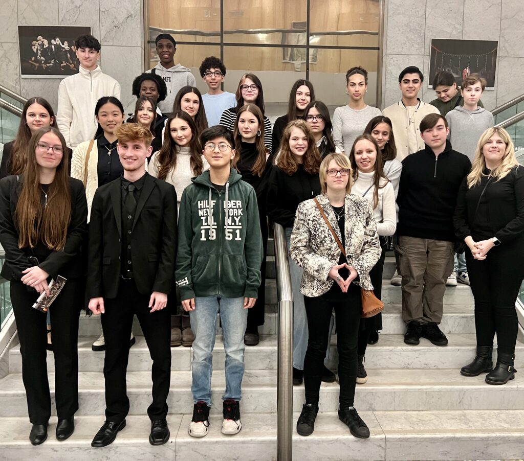 Schülerinnen und Schüler der Klassen 10a und 10b besuchten am 19.02.2024 das Musical Liebe, Mord und Adelspflichten im Theater Mönchengladbach. Das humoristische Spektakel der aufregenden Morde, die dem jungen, verarmten Monty Navarro den Aufstieg in der englischen Adelsfamilie namens D’Ysquith erleichtern sollen, gefiel den Schülerinnen und Schülern sichtlich. Besonders die Gesangseinlagen mit eingängigen Melodien sowie ein urkomischer, menschlicher Briefkasten sorgten bei allen Besucherinnen und Besuchern für Heiterkeit und einen fröhlichen Abend.