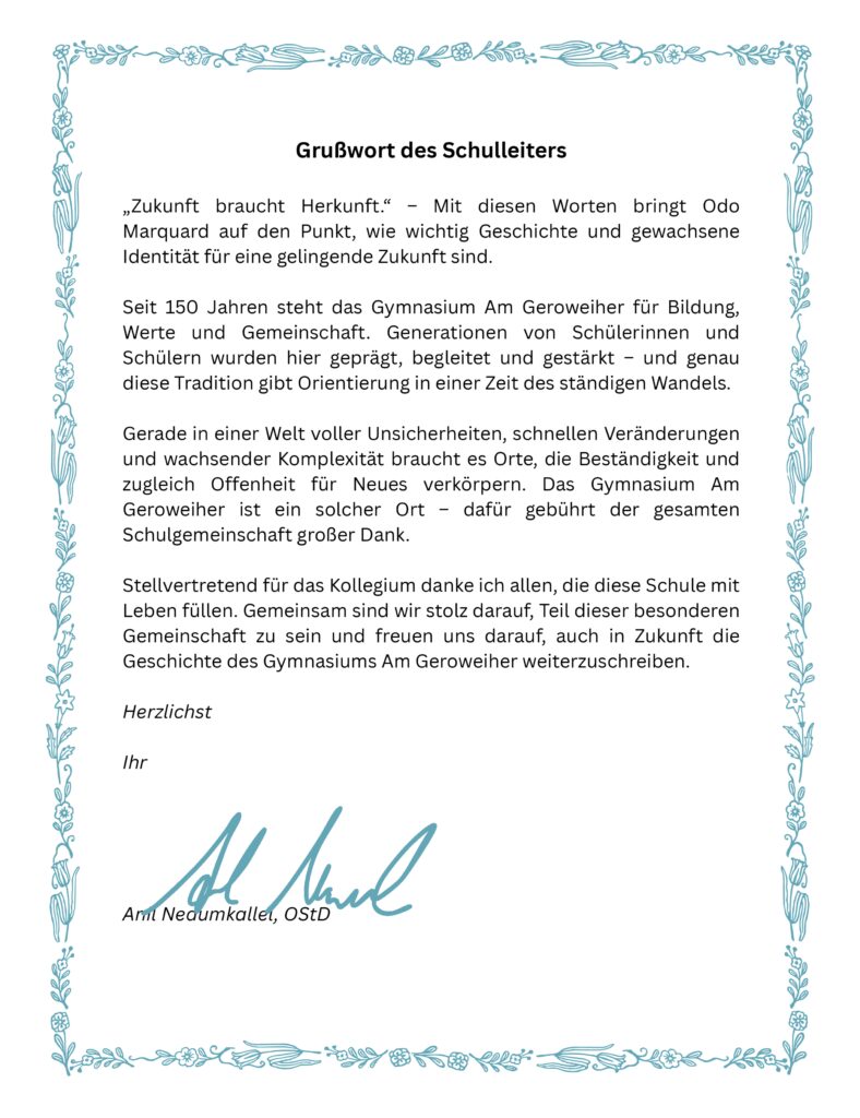 Wir freuen uns sehr auf Ihr Kommen und einen unvergesslichen Tag im Kreise unserer Schulgemeinschaft.