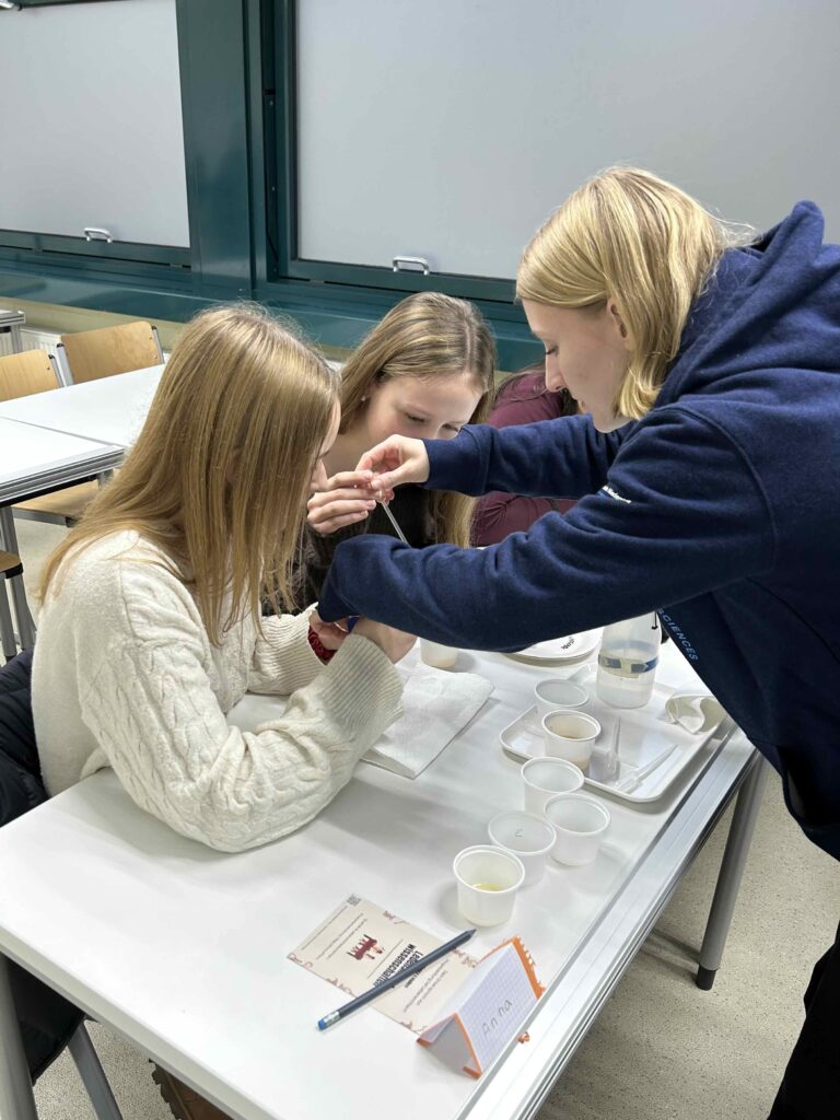 Die Science-Snacks der Hochschule umfassten kurze, anschauliche Lerneinheiten, die von Studentinnen des Food and Nutrition Lab vorgestellt wurden. So erhielten unsere Schülerinnen und Schüler spannende und praxisnahe Einblicke in die Welt der Lebensmittelwissenschaften.